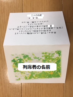 席札はそこに列席者の名前を書く形に。